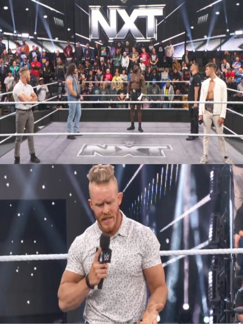 각자 자신이 다음주 WWE NXT 챔피언이 될 것이라고 말하는데 리키 세인츠가 등장해서 사다리를 타고 올라감.