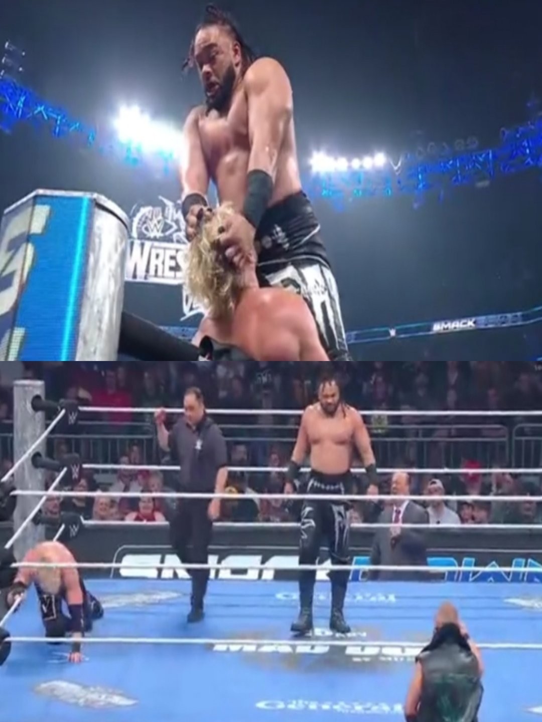 언디스퓨티드 WWE 챔피언 드류 맥킨타이어가 등장해서 심판 몰래 제이콥을 공격함.