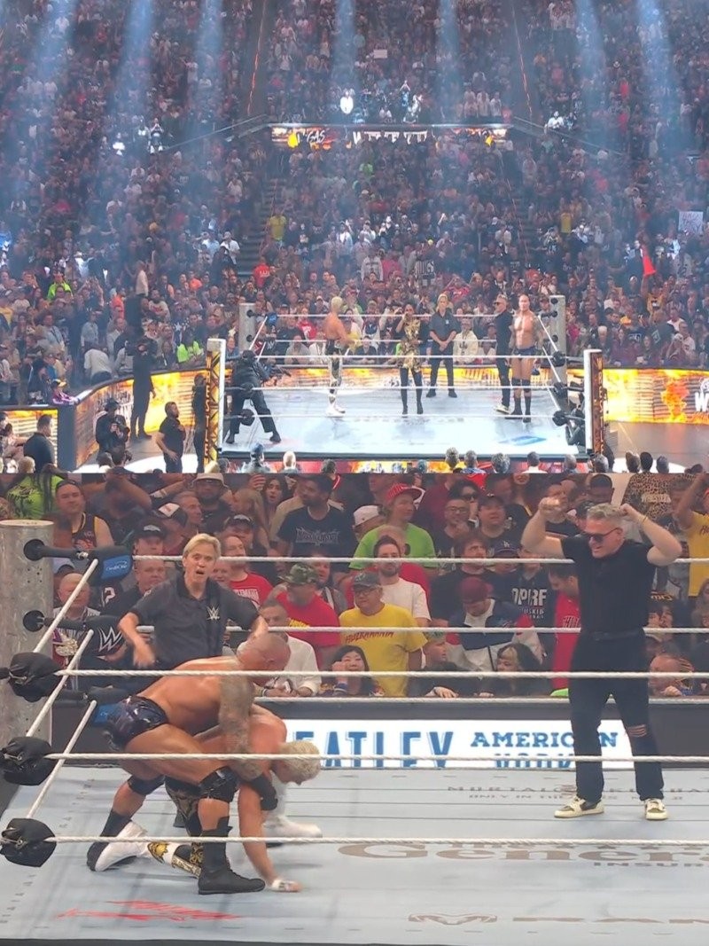 경기 후반 맥아피가 심판복을 입고 등장하는데 카운트를 늦게 세자 오턴이 RKO를 선사해버림.