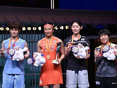 [2026 아시아 배드민턴 선수권대회 여자단식 결승] 안세영 2-1 왕 즈이 ▲ 2026년 4월 12일 중국 저장성 닝보에서 열린 배드민턴 아시아 선수권대회 여자 단식 결승전 시상식에서 금메달을 차지한 안세영(…